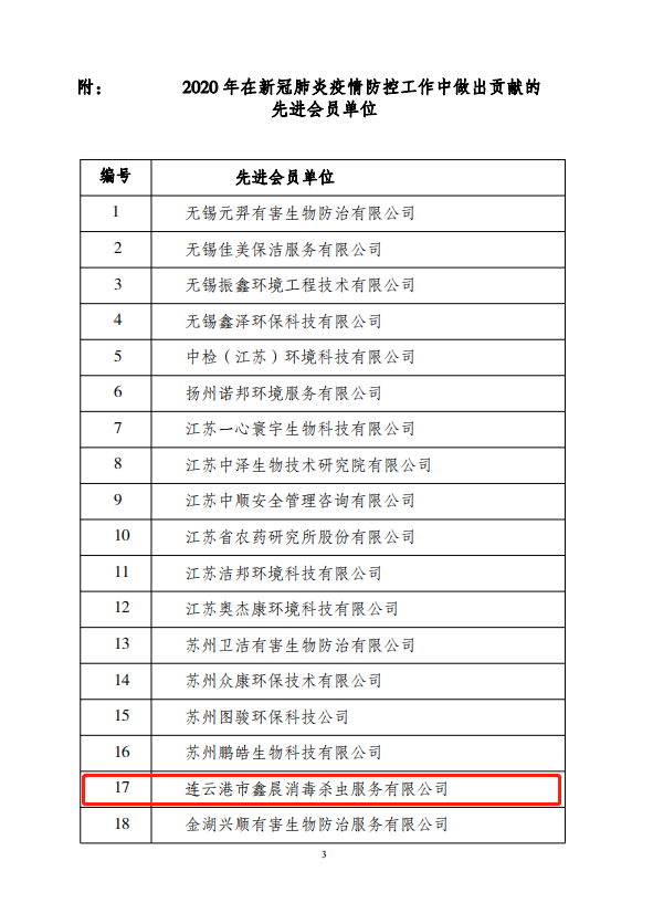 為弘揚有害生物防制行業的抗疫精神,協會決定對 2020 年積極參與新冠肺炎疫情防控消毒工作、在疫情期間積極捐款捐物、為疫情防控做出貢獻的先進會員單位給予通報表揚。